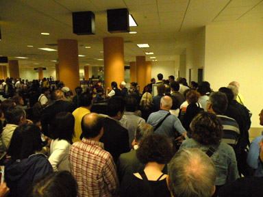 I get to immigration, along with the dozen or so others who elected to follow instructions. But there is only one booth – and no one is at it (the airport is closed, remember? no inbound flights). But we line up politely anyway, and try to keep our spirits light and make jokes about how ridiculous this is (remember, we’re all kind of giddy for having been awake for 24 hrs). I make friends with an American named Mike, who was on the coast in Peru when the tsunami following the Chile quake hit. He’d seen the videos of the Indonesia tsunami, and knew what to do when the bay in front of his beach-house suddenly emptied.
