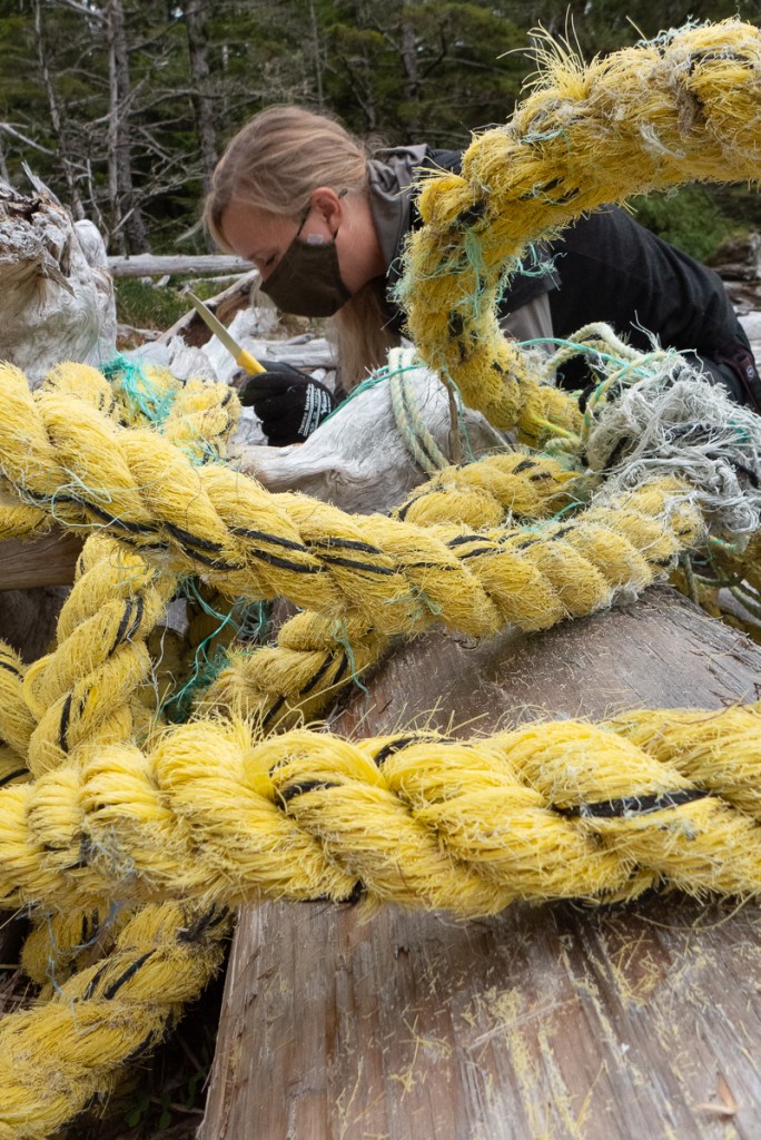 Huge and heavy ropes, some weighing 100s of kg, were tangled around and under the driftwood.