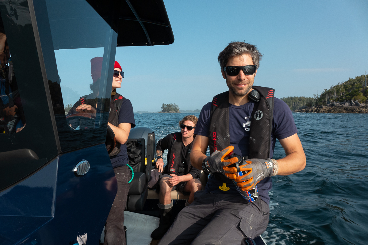 If there was just a bit too much to fit into the lift-bag – but not enough to justify a new lift-bag – we would haul the debris back to our skiff and take it back to the ship, to be picked up by helicopter straight off Cascadia’s deck later. This is a video – also by Jeff Reynolds – carting stuff down to the shoreline to be picked up in the skiff – that’s me in the turquoise shirt: