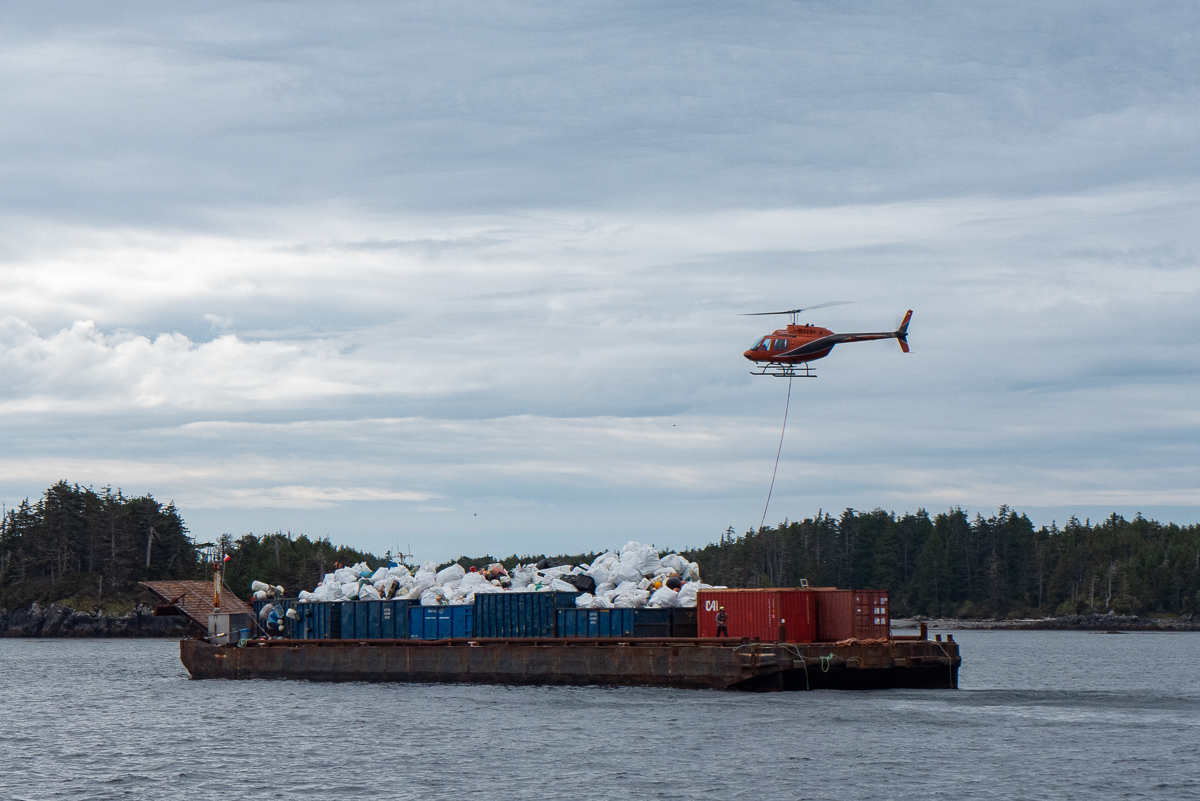 During Expedition 2 of the Marine Debris Removal Initiative this past September, we collected over 60 tonnes of debris from British Columbia’s shorelines. By the end of our first two weeks, hundreds of bulging white lift bags sat along the hundreds of kilometres of shoreline we had worked. Our final week would be the helicopter operations: slinging the bags on to a barge so we could get them out of there!