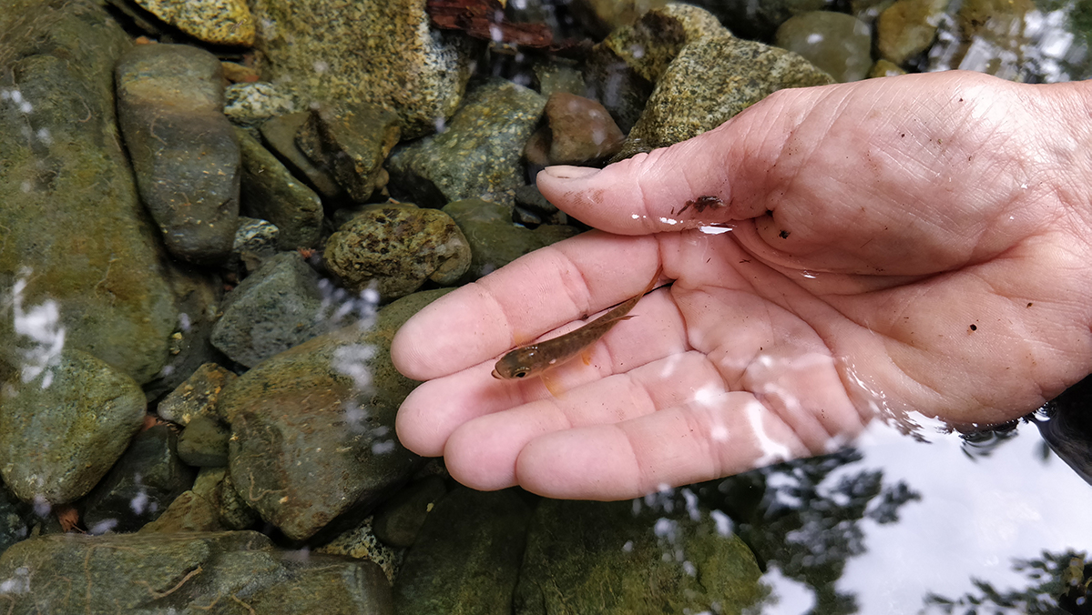 The baby salmons’ instinct is to hide from predators, so they squeeze behind and under the rocks. It was a challenge for me to pull each one out of that pebbly pool without injuring them.