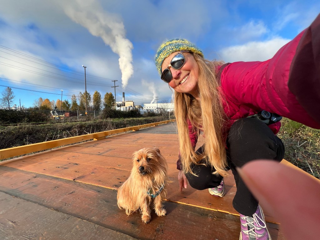 We had a beautiful day for our walk! The new trail roughly follows the waterfront, and alongside the pulp mill. Yes, logging is still important to Port Alberni.